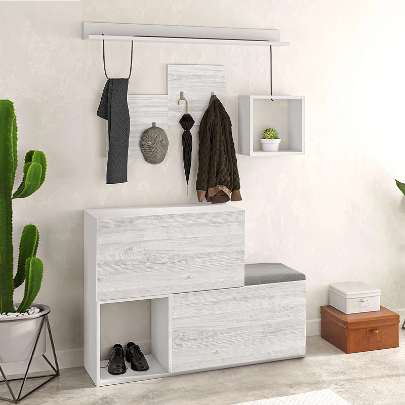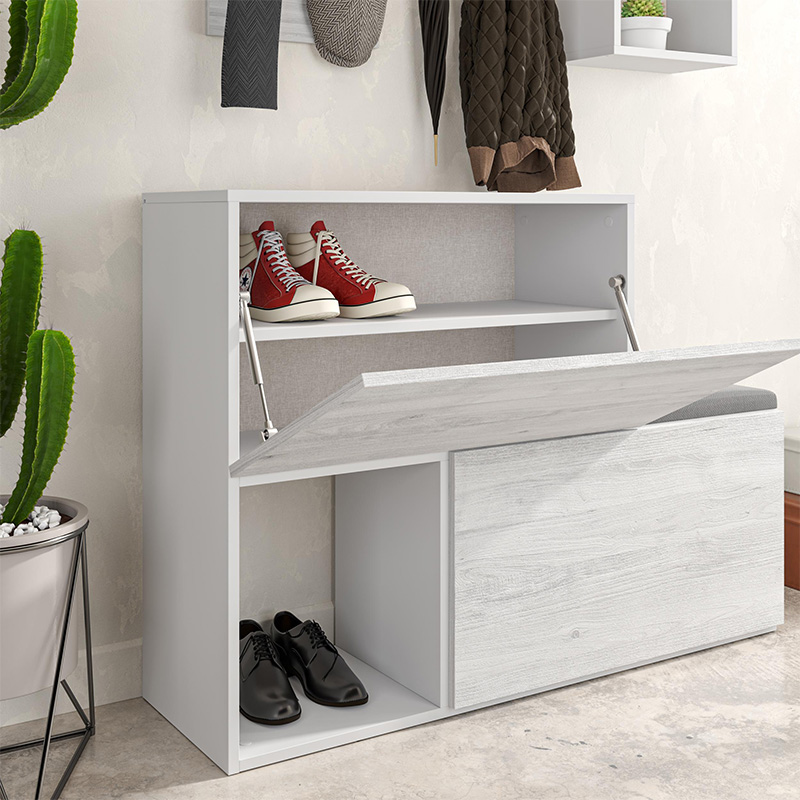 Έπιπλο εισόδου-παπουτσοθήκη Holdon Megapap μελαμίνης χρώμα λευκό αντικέ 120×36,5×87,5εκ.
