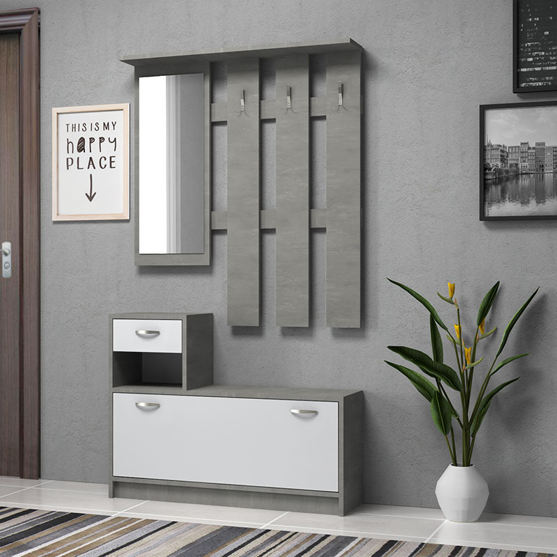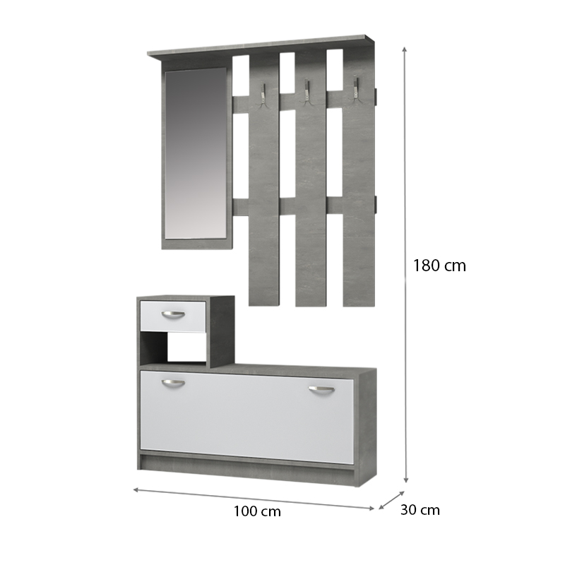 Έπιπλο εισόδου μελαμίνης Raynold Megapap χρώμα γκρι σκυροδέματος – λευκό 100x30x180εκ.