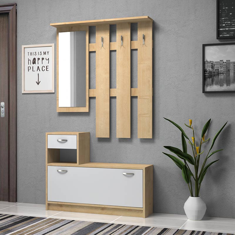 Έπιπλο εισόδου μελαμίνης Raynold Megapap χρώμα φυσικό οξιάς – λευκό 100x30x180εκ.
