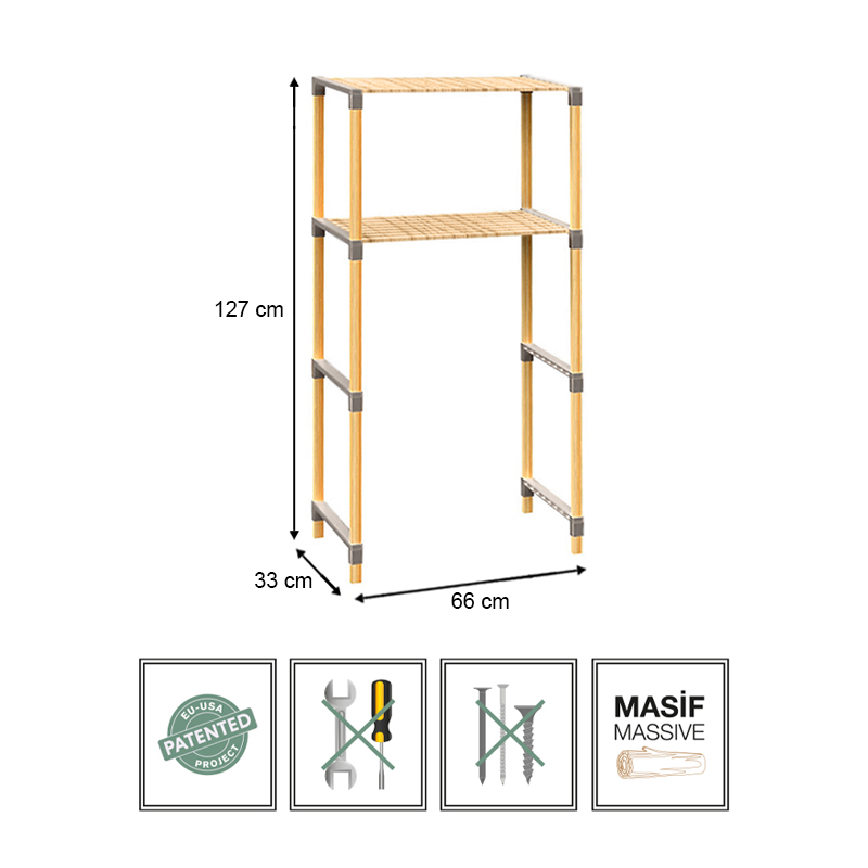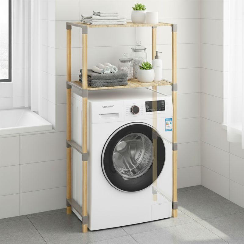 Έπιπλο πλυντηρίου ξύλινο – πλαστικό χρώμα φυσικό 66x33x127εκ.