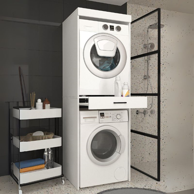 Έπιπλο πλυντηρίου – στεγνωτηρίου Fika Megapap χρώμα λευκό 67×61,8×198,5εκ.