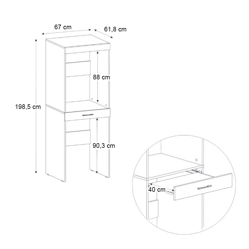 • Διαστάσεις: Μήκος 67 x Βάθος 61,8 x Ύψος 198,5 εκ.