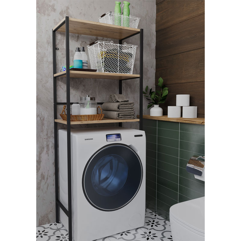 Έπιπλο πλυντηρίου Zermin pakoworld μελαμίνης-μεταλλικό φυσικό-μαύρο 70x25x150εκ