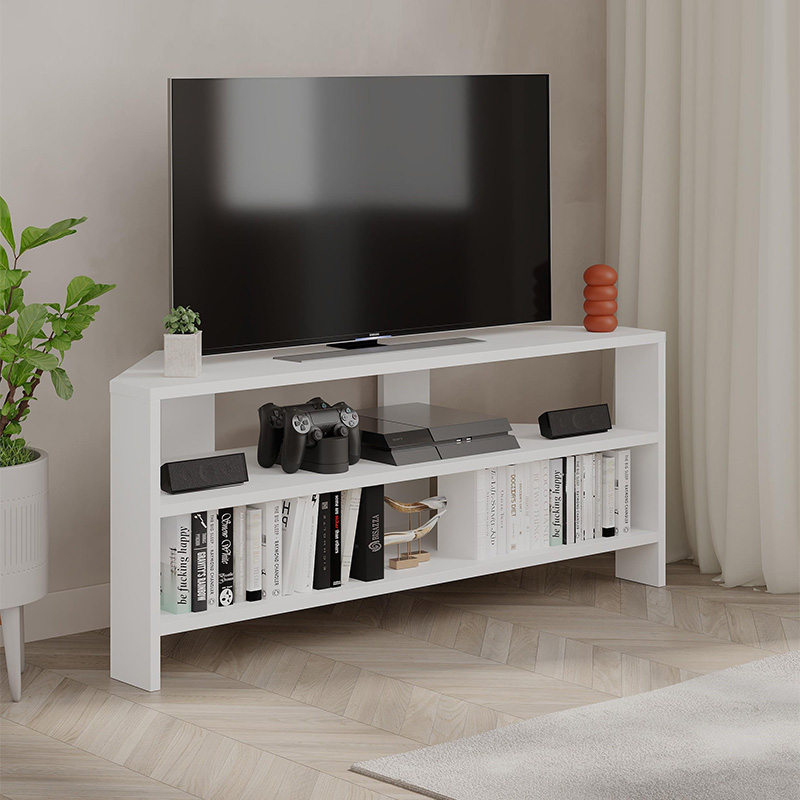 Έπιπλο τηλεόρασης γωνιακό Thales Megapap μελαμίνης χρώμα λευκό 110x36x45εκ.