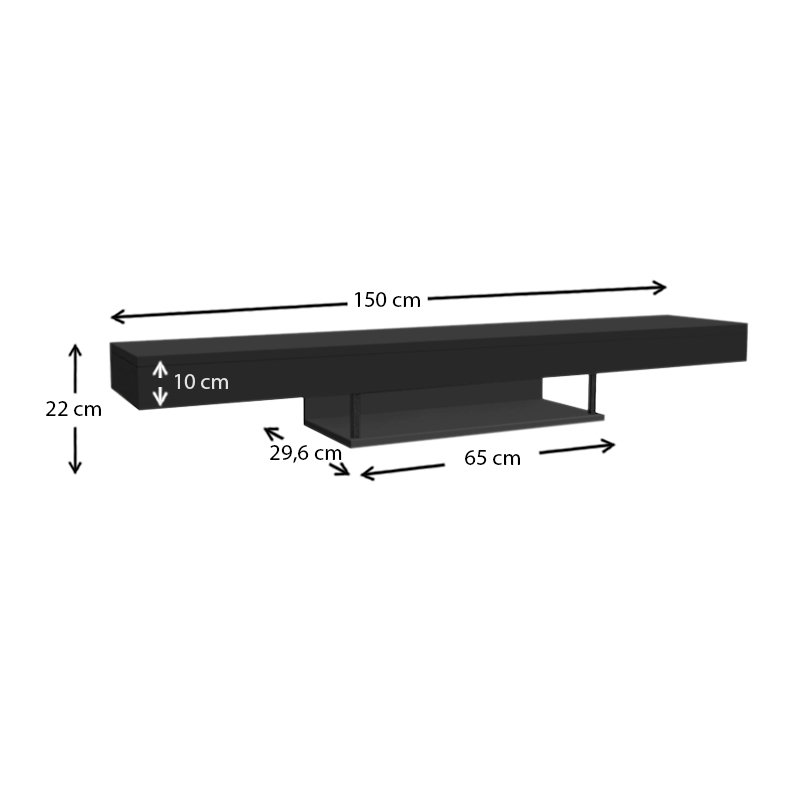 Έπιπλο τηλεόρασης επιτοίχιο Albares Megapap από μελαμίνη με LED χρώμα μαύρο 150×29,6×22εκ.