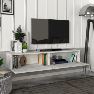 Έπιπλο τηλεόρασης επιτοίχιο Aristo Megapap με LED χρώμα λευκό εφέ μαρμάρου 135×31,6×25εκ.