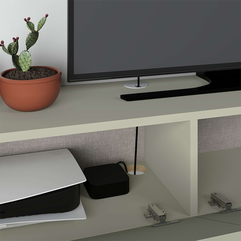 Ένα επιτοίχιο έπιπλο τηλεόρασης που συνδυάζει αρχιτεκτονική κομψότητα με λειτουργικότητα, κρύβοντας καλώδια και εντυπωσιάζοντας με τον minimal όγκο του.