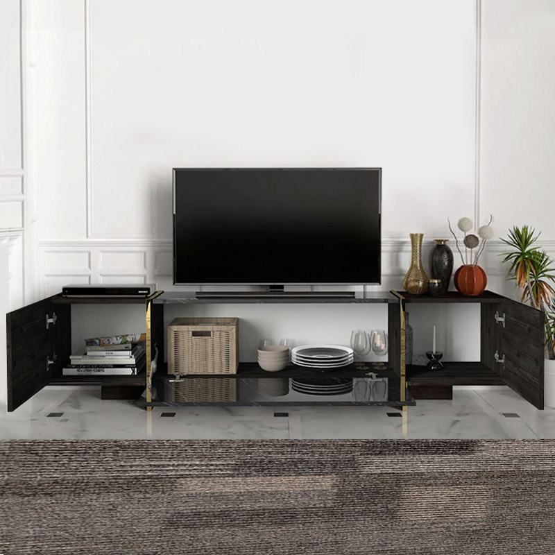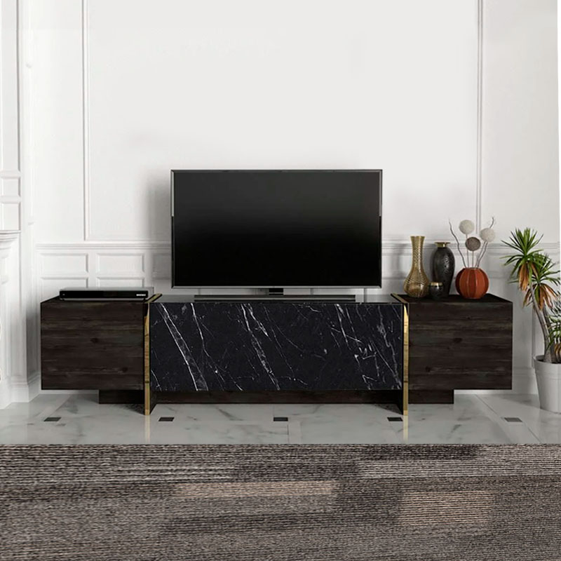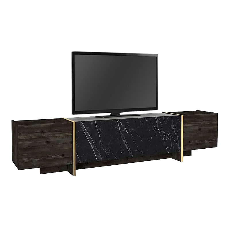 Έπιπλο τηλεόρασης Veyron Megapap χρώμα μαύρο rebab – μαύρο εφέ μαρμάρου 180×32,3×45εκ.