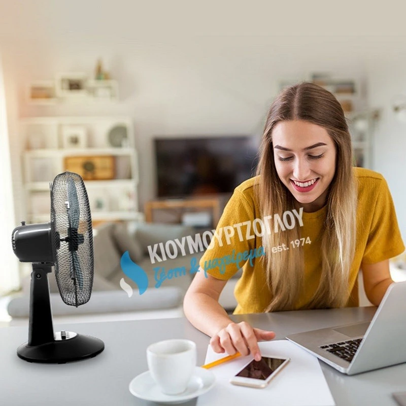 Τέλος, η πρακτική λαβή μεταφοράς καθιστά τον ανεμιστήρα εύκολο στη μετακίνηση και την αποθήκευση.