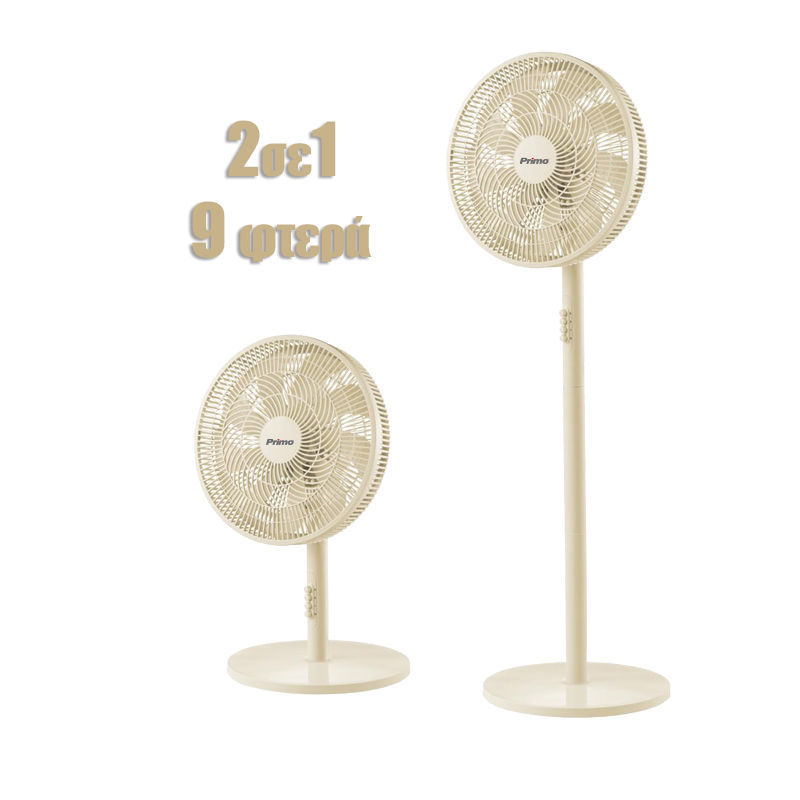Ανεμιστήρας Ορθοστάτης PRSF-80648 16” 40εκ. 9Φτερά Κρεμ 2 σε 1
