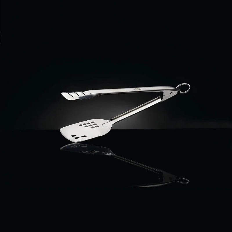 Το πολλαπλών χρήσεων 2 σε 1 εργαλείο ψησίματος της Napoleon, κατασκευασμένο από ποιοτικό ανοξείδωτο ατσάλι συνδυάζει σπάτουλα & λαβίδα σε ένα κοινό εργαλείο για το μπάρμπεκιου.