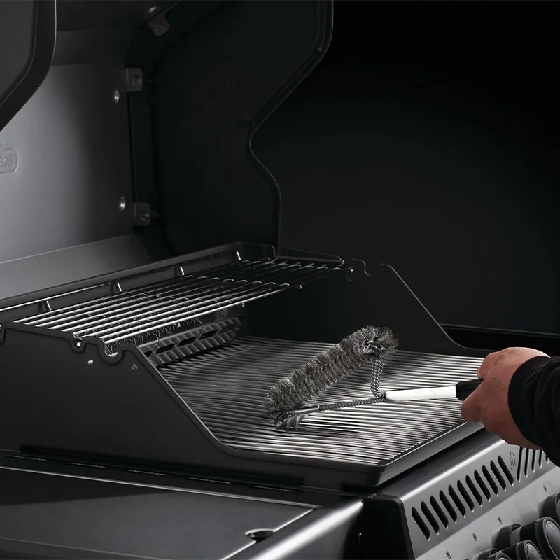 Η τριπλή ανοξείδωτη βούρτσα καθαρισμού της Napoleon, ειδικά σχεδιασμένη για να εισχωρεί σε όλες τις εσοχές της σχάρας.