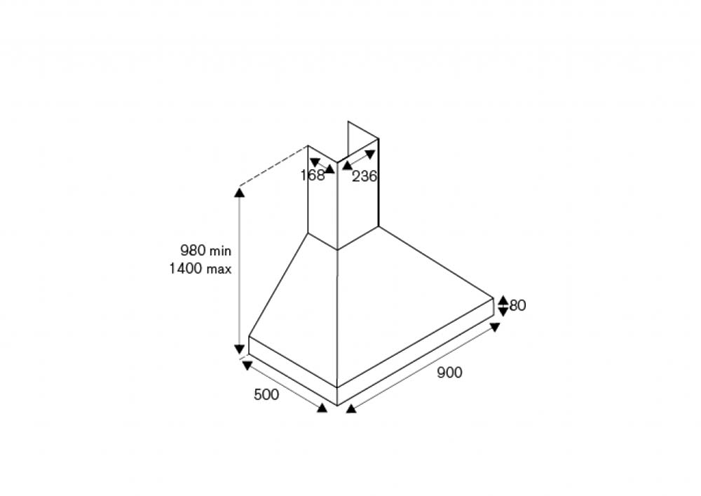 Απορροφητήρας επιτοίχιος La Germania K90AMHXA/19, ενεργειακής κλάσης A, τοποθετείται στον τοίχο. Η μέγιστη απορροφητική ισχύς είναι 725 m³/h, η οποία μπορεί να καλύψει ικανοποιητικά χώρους έως και 28 m².