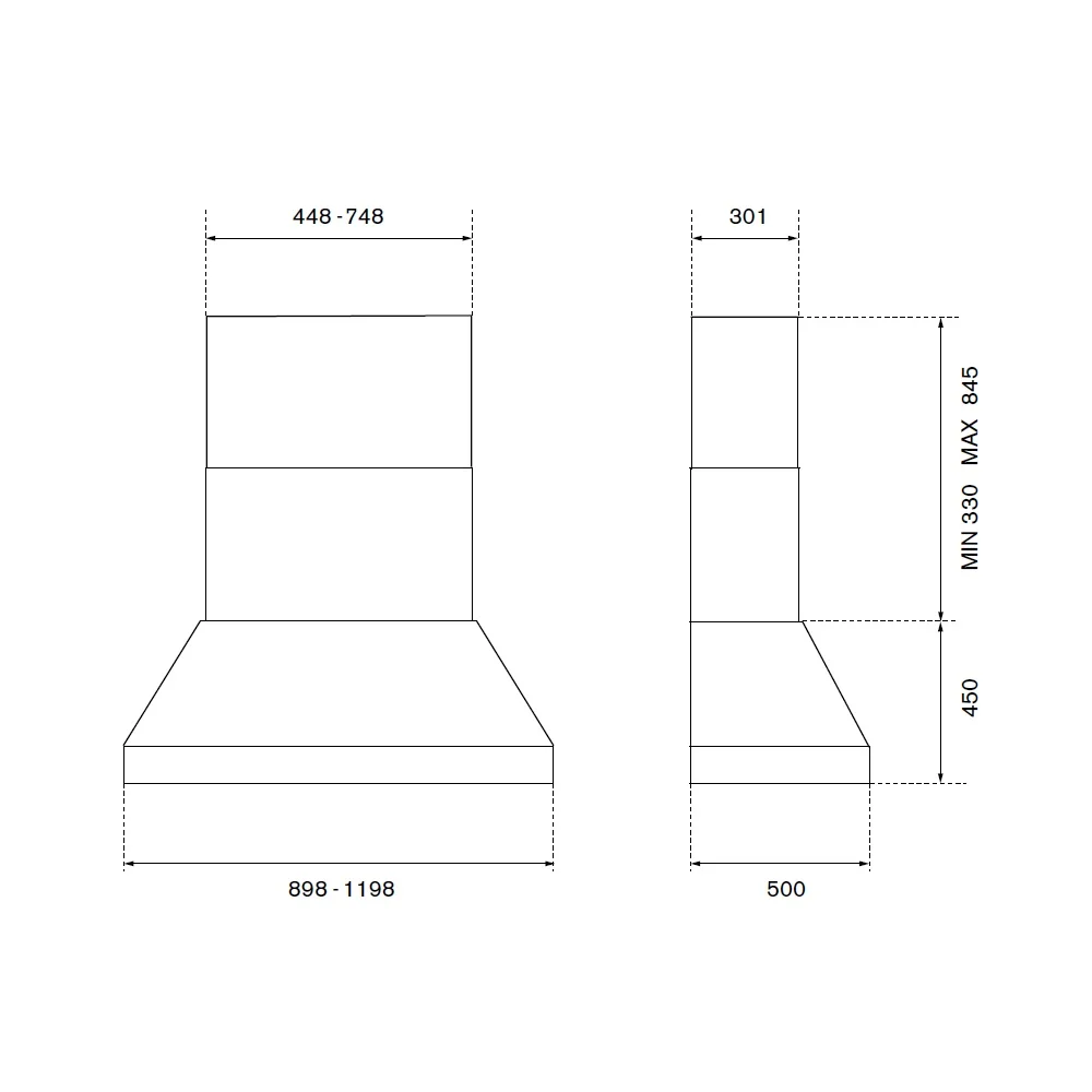 Απορροφητήρας τζάκι επιτοίχιος Bertazzoni Τεχνικά χαρακτηριστικά