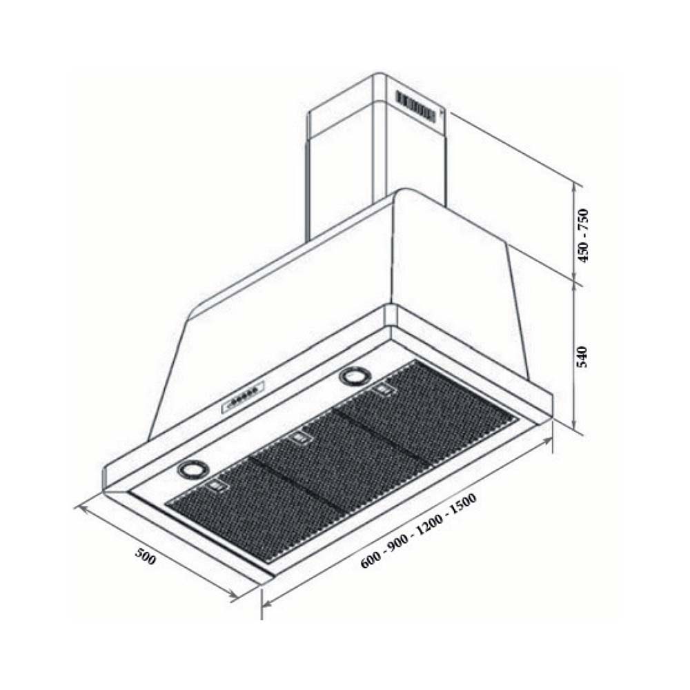 120εκ. επιτοίχιος απορροφητήρας, χρώμα μαύρο ματ με ανοξείδωτη καμινάδα και πάνελ εντολών, τηλεχειρισμός – RemoteControl, 800cm/h απορροφητικότητα, φωτισμός με 2 λάμπες αλογόνου, Ενεργειακή κατηγορία A