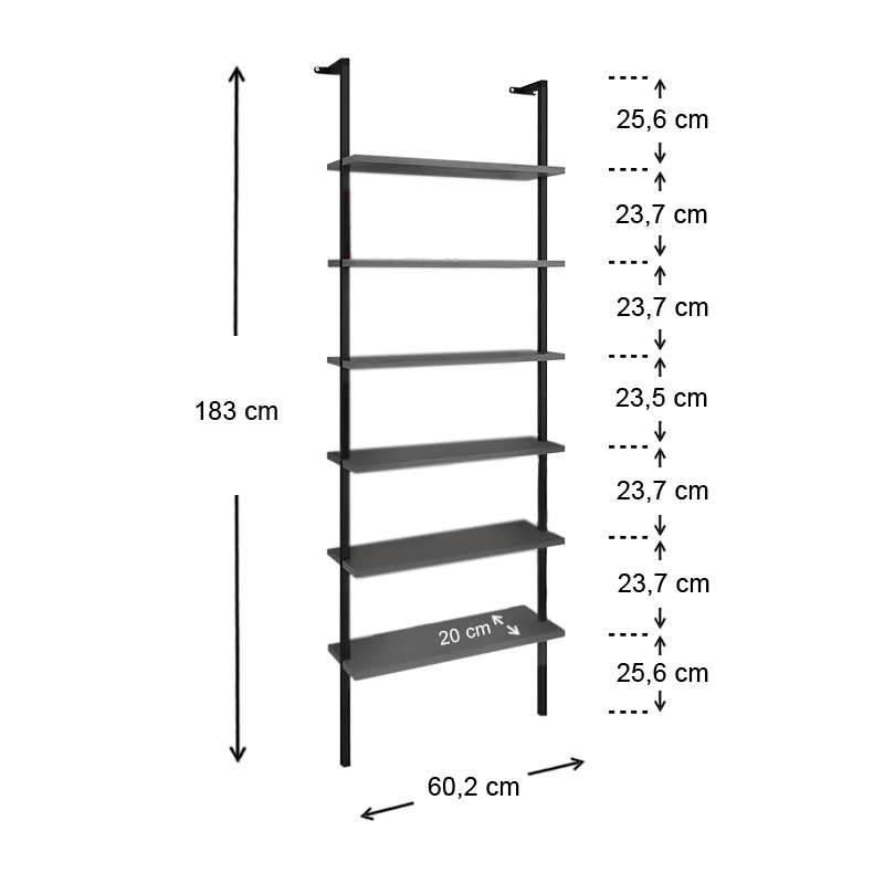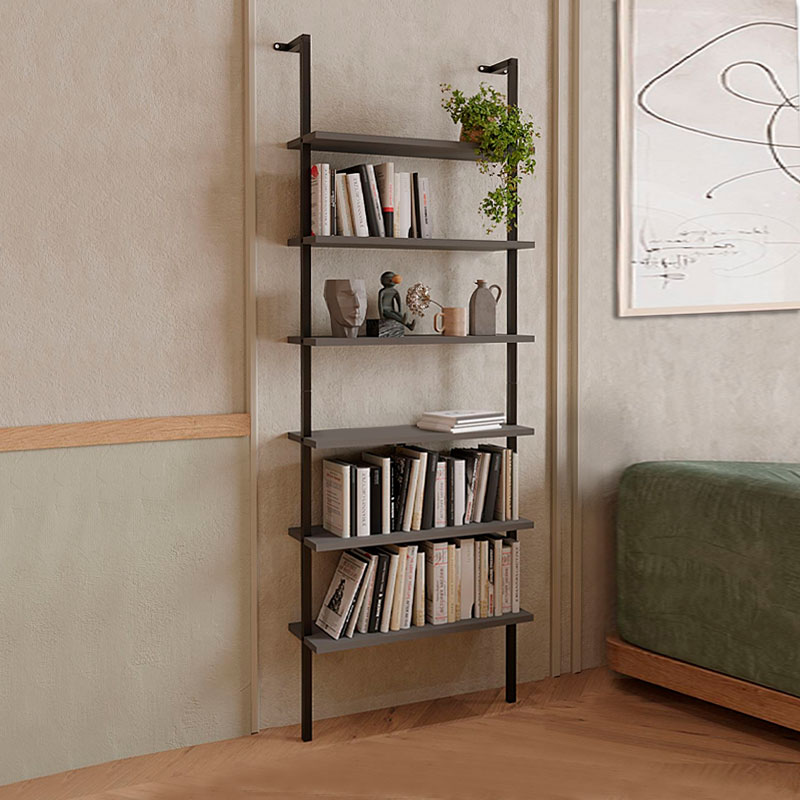 Βιβλιοθήκη τοίχου Madison Megapap μεταλλική – μελαμίνης χρώμα μαύρο – ανθρακί