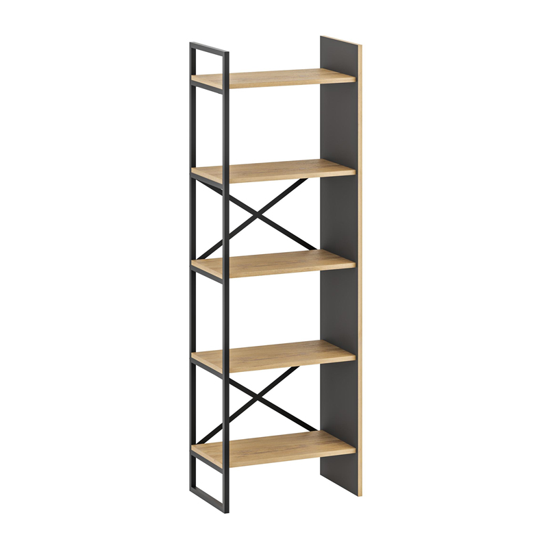Βιβλιοθήκη Detroit Megapap χρώμα sapphire oak – silky black 58×35,2×175εκ.