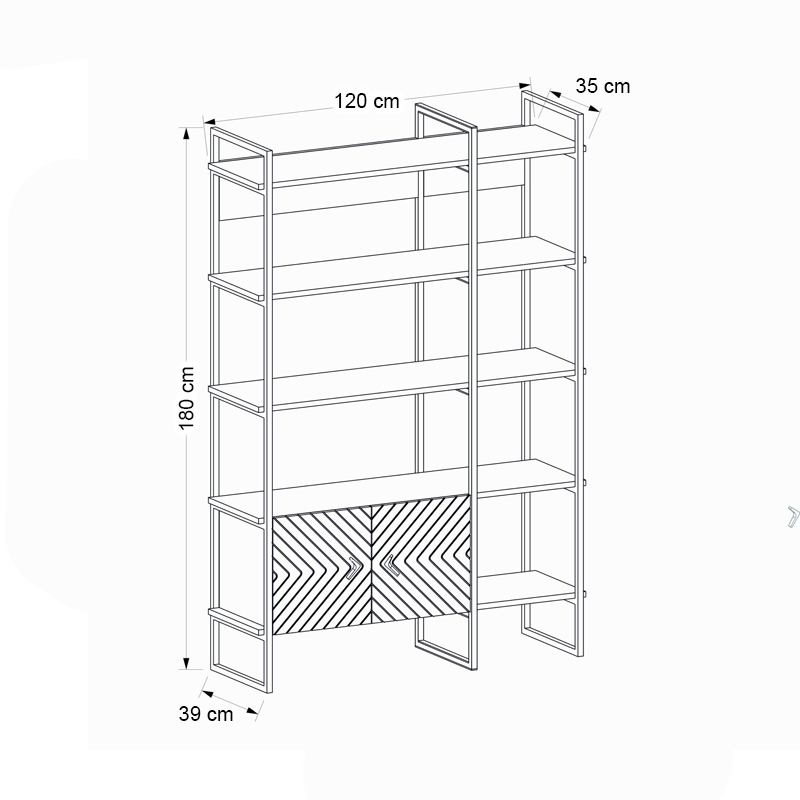 Βιβλιοθήκη Eduardo Megapap μεταλλική – μελαμίνης χρώμα sapphire oak 120x39x180εκ.