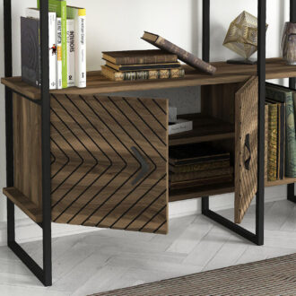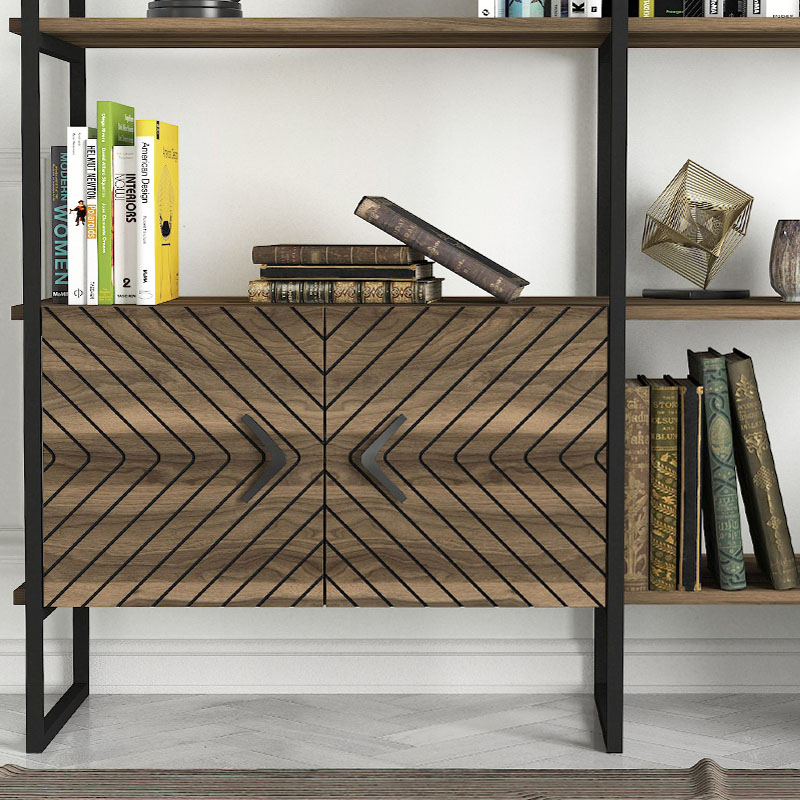 Βιβλιοθήκη Eduardo Megapap μεταλλική – μελαμίνης χρώμα καρυδί 120x39x180εκ.