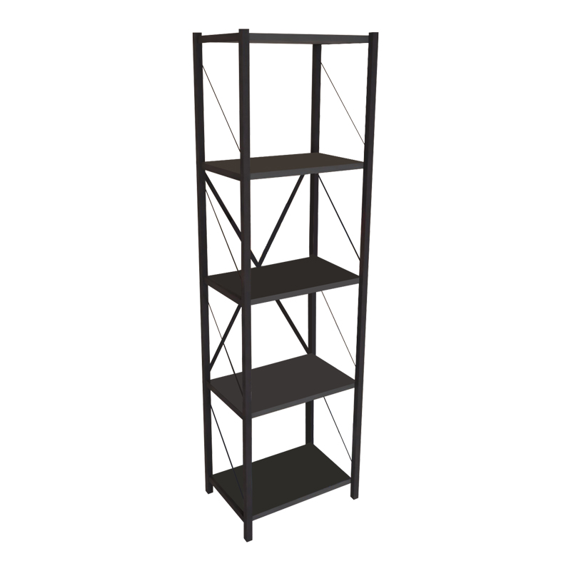 Βιβλιοθήκη Glase pakoworld ανθρακί μελαμίνης-μαύρο μέταλλο 40x30x150εκ