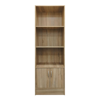 Η κομψή βιβλιοθήκη Tekaro συνδυάζει λειτουργικότητα και στυλ, προσφέροντας άφθονο αποθηκευτικό χώρο για βιβλία και διακοσμητικά αντικείμενα. Διαθέτει ένα ενσωματωμένο ντουλάπι στο κάτω μέρος, ιδανικό για διακριτική αποθήκευση. Οι μεταλλικές λαβές προσθέτουν μια μοντέρνα πινελιά, ενώ η στιβαρή ξύλινη κατασκευή εγγυάται ανθεκτικότητα.