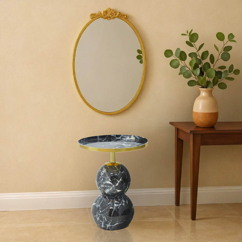 Βοηθητικό τραπέζι Dearest Inart μαυρο μαρμάρου-χρυσό μέταλλο Φ41×57εκ