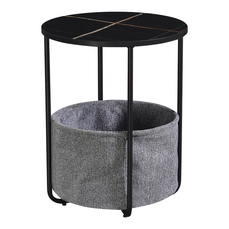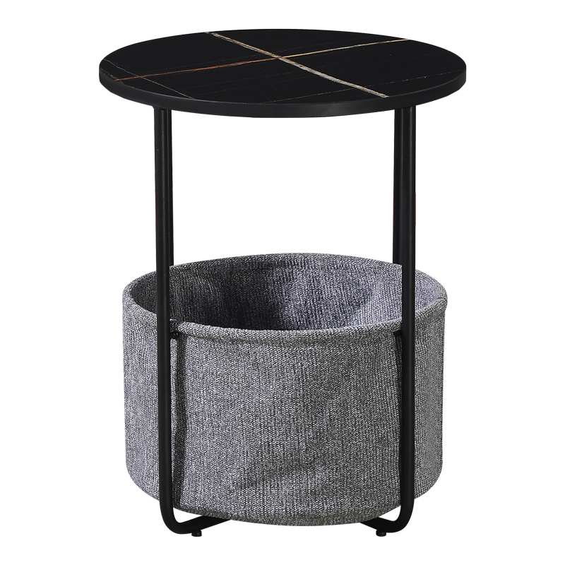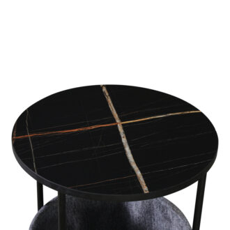 Τραπεζάκι βοηθητικό Kalid Megapap μελαμίνης – υφασμάτινο χρώμα μαύρο εφέ μαρμάρου – γκρι 43x43x60εκ.
