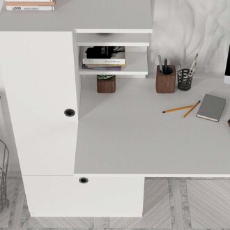Γραφείο εργασίας Domingo Megapap από μελαμίνη χρώμα λευκό 149,5x60x120εκ.