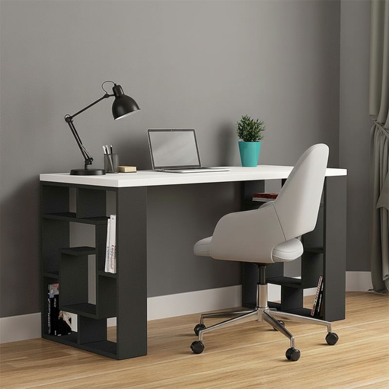 Γραφείο εργασίας Labirent Megapap από μελαμίνη χρώμα ανθρακί – λευκό 140x60x75εκ