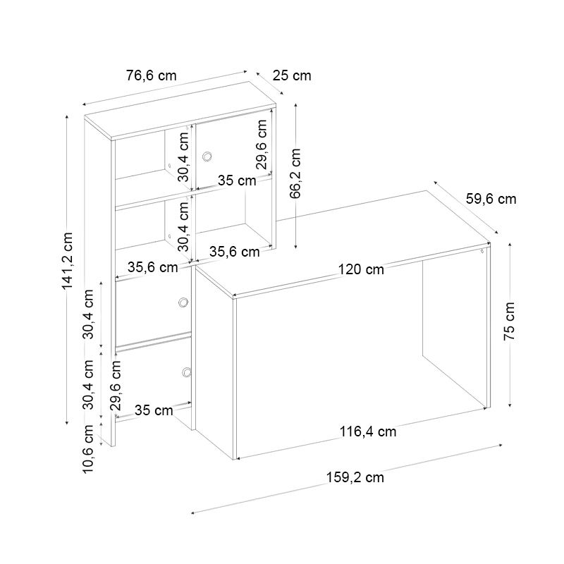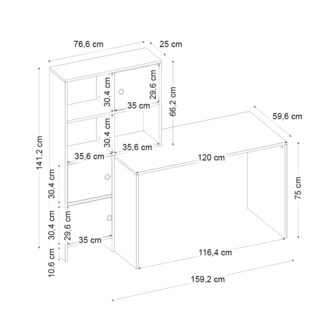 • Διαστάσεις γραφείου: Μήκος 120 x Βάθος 59,6 x Ύψος 75 εκ.