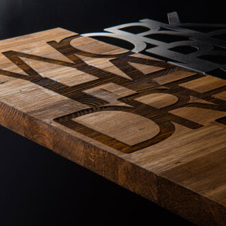 • Κατασκευασμένο από ξύλο πεύκου υψηλής ποιότητας (3cm) με την έκφραση να είναι κατασκευασμένο από μέταλλο σε μαύρο χρώμα (1.2mm).