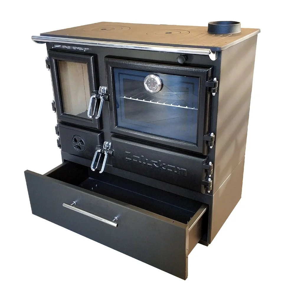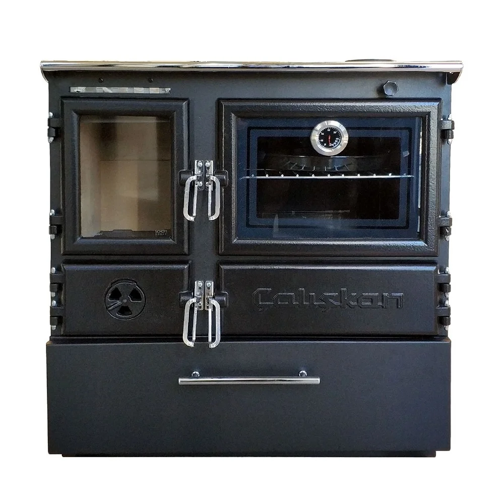 Ενεργειακή Σόμπα Ξύλου Με Φούρνο Caliskan 214 Με θήκη με μέγιστο θερμαινόμενο χώρο τα 70 τ.μ. και συνολική ισχύ θέρμανσης 7 kW, αποτελεί ιδανική επιλογή για μεγάλα δωμάτια και ανοιχτούς χώρους. Η μαντεμένια σόμπα διατίθεται σε δύο εκδόσεις την απλή και αυτή με τη θήκη.