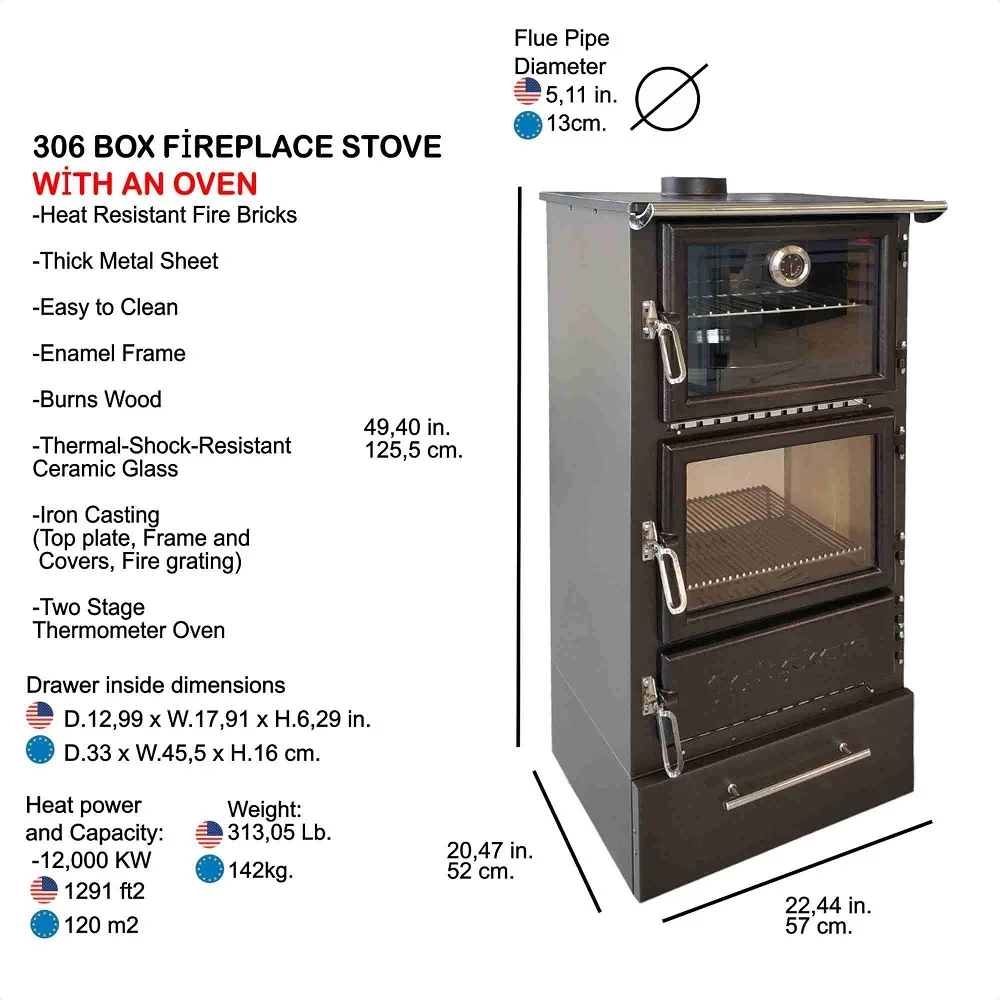 Ενεργειακή Σόμπα Ξύλου Με Φούρνο Caliskan 306 με Θήκη, 12kW, για χώρους έως 120 τ.μ. Αντοχή, απόδοση και δυνατότητα μαγειρέματος σε μία κομψή λύση θέρμανσης.