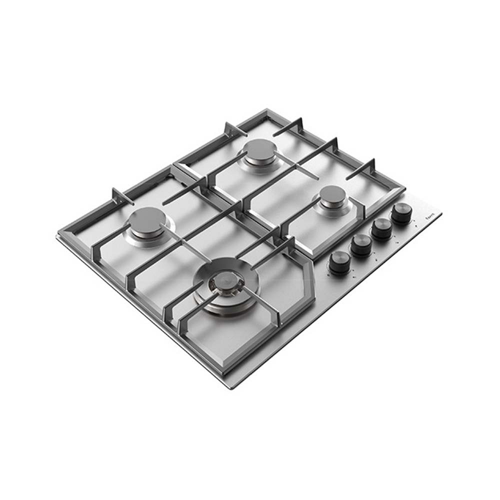 Εντοιχιζόμενη ανοξείδωτη εστία κουζίνας αερίου CALF-BL021/W, με 4 ζώνες μαγειρέματος η μία είναι wok και μαντεμένιες σχάρες.