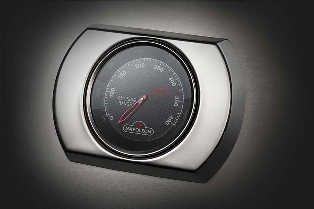 Λάβετε τον απόλυτο έλεγχο της θερμοκρασίας στο μπάρμπεκιου με το θερμόμετρο υψηλής ακρίβειας που βρίσκεται ενσωματωμένο σε κάθε καπάκι των μοντέλων Napoleon Prestige PRO.