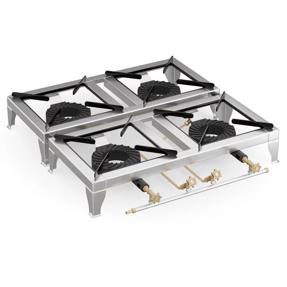 Επιτραπέζια εστία αερίου ίνοξ με τέσσερις καυστήρες χαμηλής πίεσης Φ18 GX40 (2 εμπρός 2 πίσω) | Ελληνικής κατασκευής με ισχύ 40kw.