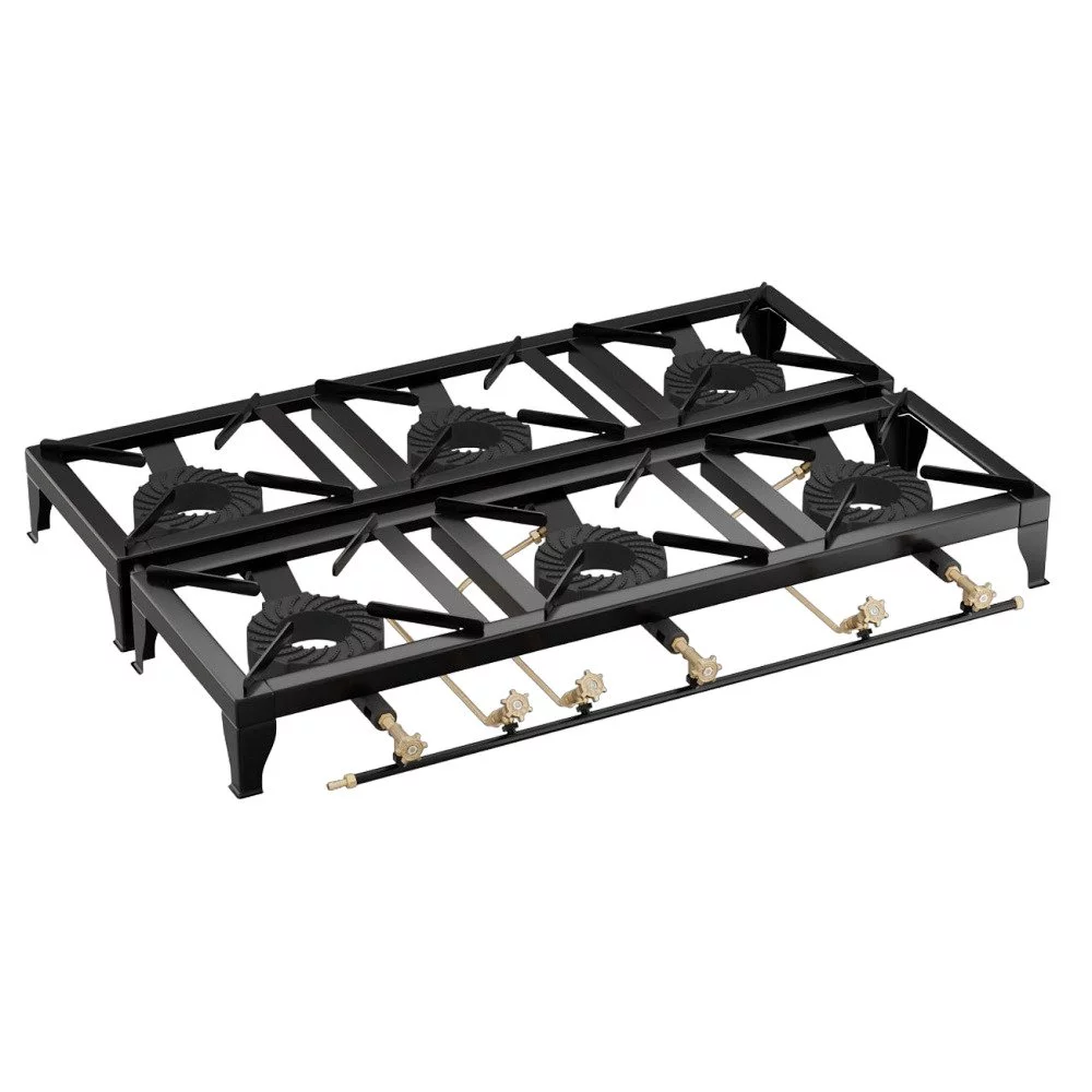 Επιτραπέζια εστία αερίου μαύρη με έξι καυστήρες χαμηλής πίεσης Φ18 GX60 (3 εμπρός 3 πίσω) | Ελληνικής κατασκευής με ισχύ 60kw.