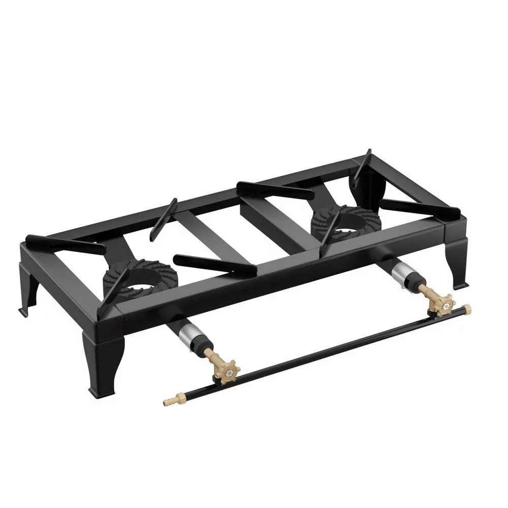 Επιτραπέζια εστία αερίου μαύρη με δυο καυστήρες χαμηλής πίεσης Φ14 GX20 | Ελληνικής κατασκευής με ισχύ 16kw.
