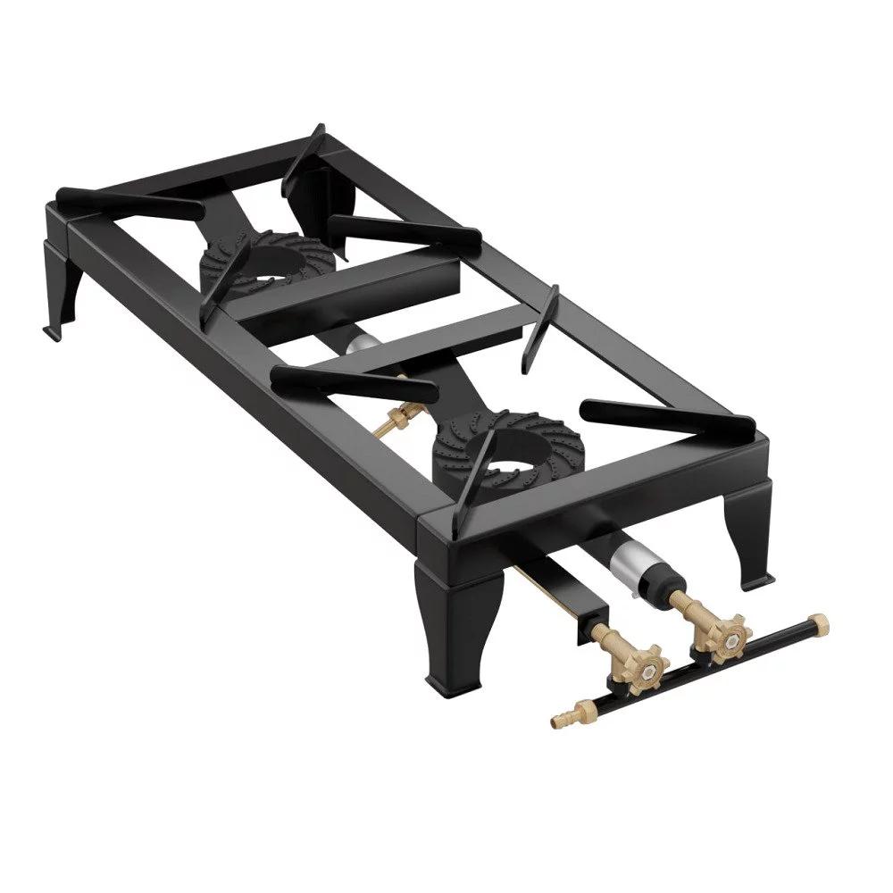 Επιτραπέζια εστία αερίου μαύρη με δύο καυστήρες χαμηλής πίεσης Φ14 GX22 ένας εμπρός & ένας πίσω | Ελληνικής κατασκευής με ισχύ 16kw.