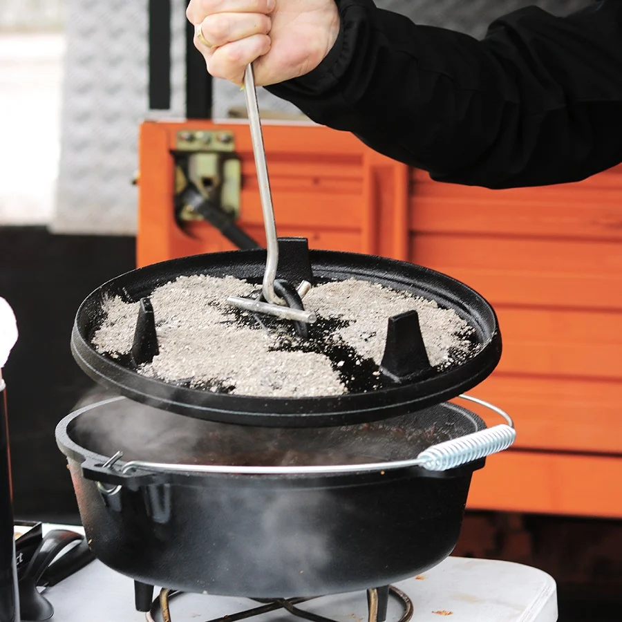 To εργαλείο ανύψωσης καπακιού είναι ένα απαραίτητο αξεσουάρ για μια μαντεμένια γάστρα Dutch Oven!