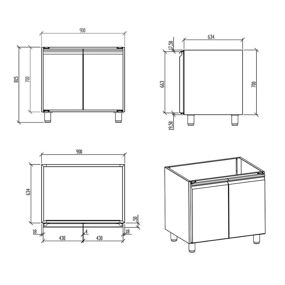 Ερμάριο INOX με δύο πόρτες ΕΧ7-90-ΡΡ – χωρίς πάγκο.