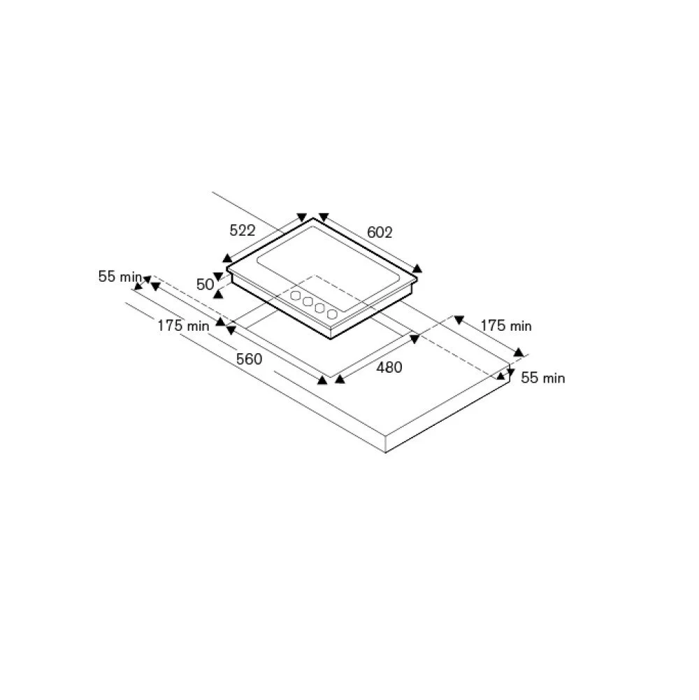 • Διαστάσεις κοπής πάγκου (ΠxΒ) 560 x 480 χιλ.
