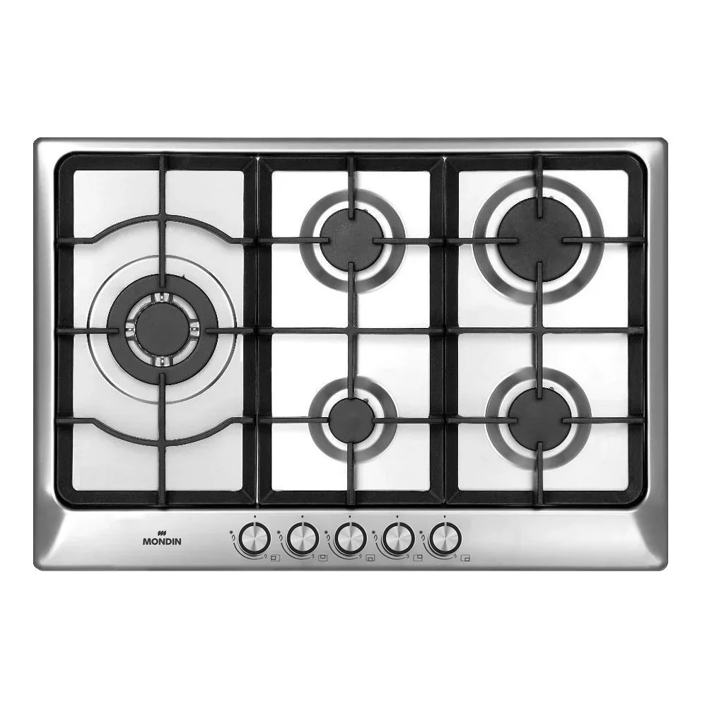 Εστία αερίου MONDIN A0755VPGCX | LINEA MATERA, 75εκ. – εστία αερίου με 5 καυστήρες, Χρώμα – Ανοξείδωτο, Ασημένιοι μεταλλικοί επιλογείς, 5 καυστήρες με αλουμινένιους διασπορείς, σχάρες χυτοσιδήρου, καυστήρας διπλής φλόγας, WOK-4.0kW.