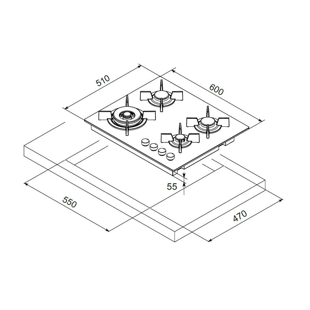 • Διαστάσεις κοπής πάγκου (ΠxΒ) 550 x 470 χιλ.