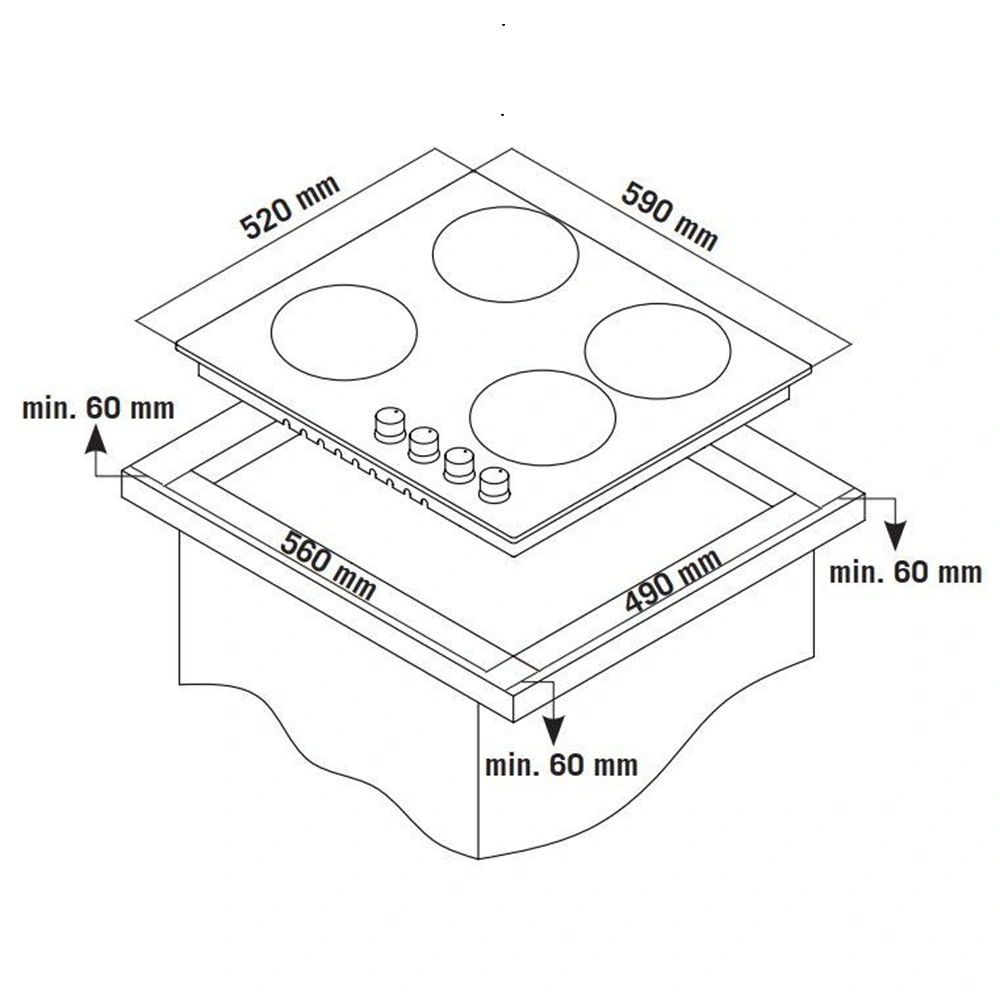 Καθώς η εστία είναι αυτόνομη άνω πάγκου, την τοποθετείς εύκολα όπου σε εξυπηρετεί καλύτερα στον χώρο σου, ενώ ταυτόχρονα τη συνδυάζεις ιδανικά με οποιονδήποτε φούρνο άνω πάγκου.