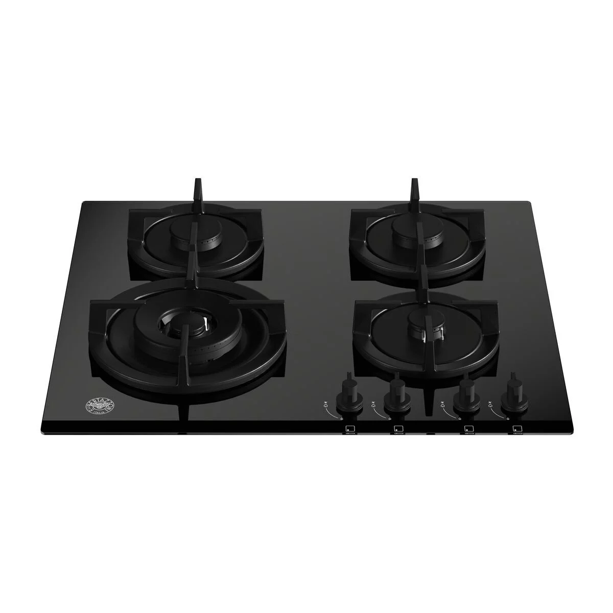 Εστία αερίου Bertazzoni P60 4L MOD GNE με 4 καυστήρες με διασπορείς αλουμινίου, μαύρη κρυστάλλινη επιφάνεια, 1 καυστήρας διπλής φλόγας WOK 4kW, σχάρες χυτοσιδήρου μαύροι επιλογείς SoftTouch.
