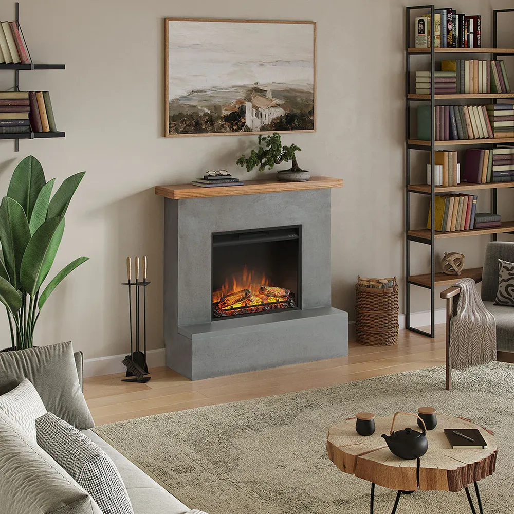Το ηλεκτρικό τζάκι Rolf συνδυάζει μοντέρνο σχεδιασμό, ρεαλιστική φλόγα και χειροποίητη ποιότητα κατασκευής. Κατασκευασμένο από κεραμικό υλικό Lightstone® με ξύλινη λεπτομέρεια antique oak, προσφέρει αυθεντική ατμόσφαιρα χωρίς καμινάδα. Λειτουργεί με ή χωρίς θερμότητα – ιδανικό για όλο τον χρόνο.