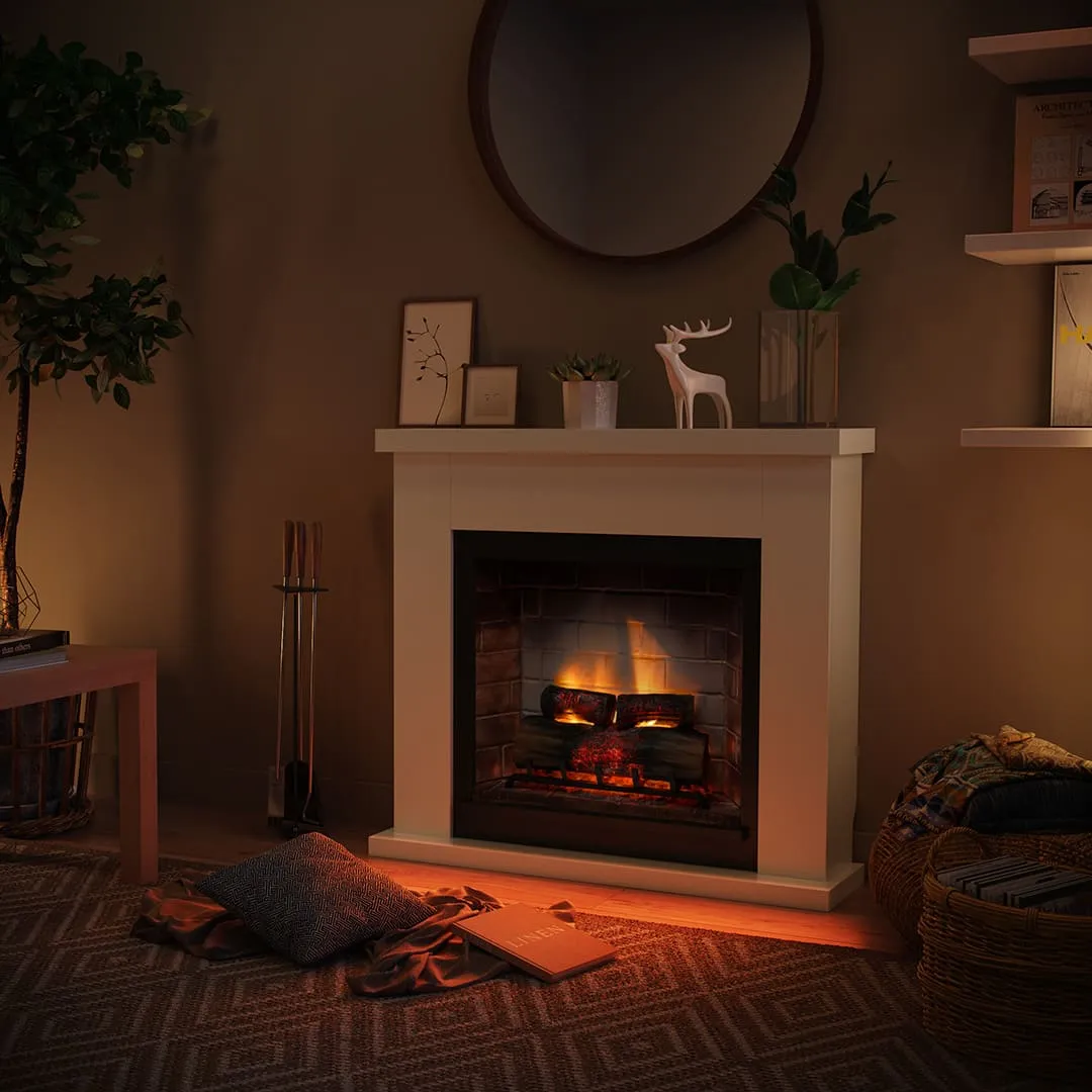 - Διακριτικός Φωτισμός: Σε χαμηλό φωτισμό, η απαλή λάμψη μπροστά από το τζάκι προσφέρει την αίσθηση μιας φυσικής φωτιάς.
