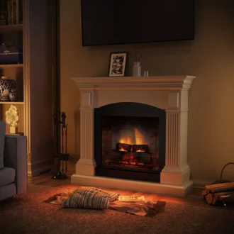 • Διακριτικός Φωτισμός: Σε χαμηλό φωτισμό, η απαλή λάμψη μπροστά από το τζάκι προσφέρει την αίσθηση μιας φυσικής φωτιάς.