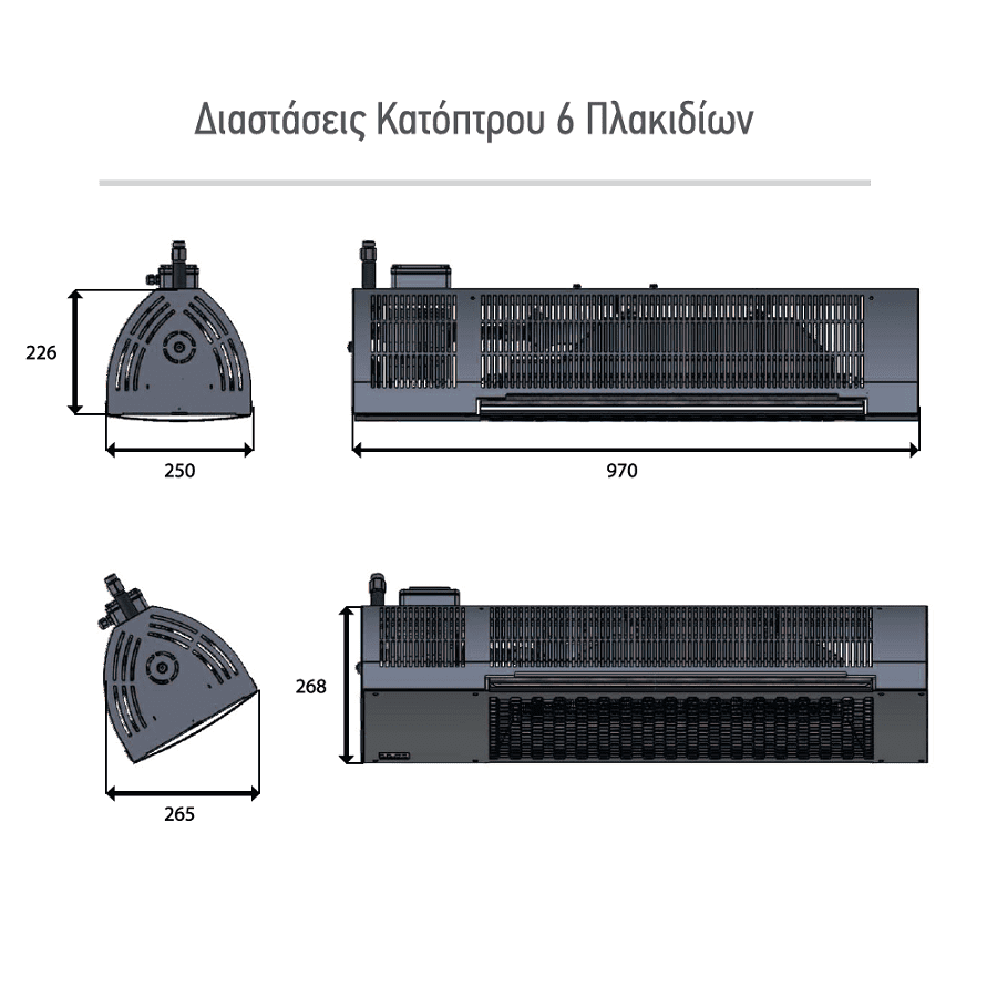 Θερμαντικό κάτοπτρο ακτινοβολίας αερίου 6 κεραμικών με τηλεχειριστήριο και προστατευτικό σκέπαστρο για εξωτερικούς χώρους εως 35m².